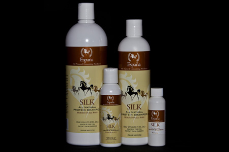 Naturally soap and detergent free and properly ph balanced, Espana SILK Natural Protein Enhanced Shampoo deep cleans, conditions and dramatically moisturizes. A special blend of extra Silk Proteins, Vegetable Proteins, Coconut Surfactant and Jojoba Oil provides superior conditioning to accentuate natural gloss and sheen. Don’t expect heaps of suds; they actually inhibit the cleaning and moisturizing that hair requires because suds clump hair shafts together. With SILK Natural Protein Shampoo, you’ll see the difference as it separates each hair shaft and gives it individual attention to ensure deep cleaning and moisturizing that hair requires. Plus rinsing is a breeze, saving time and water. Great for dogs, cats, horses, all animals and people. Environmentally friendly! (Ready-to-use or up to 15:1 dilution).
